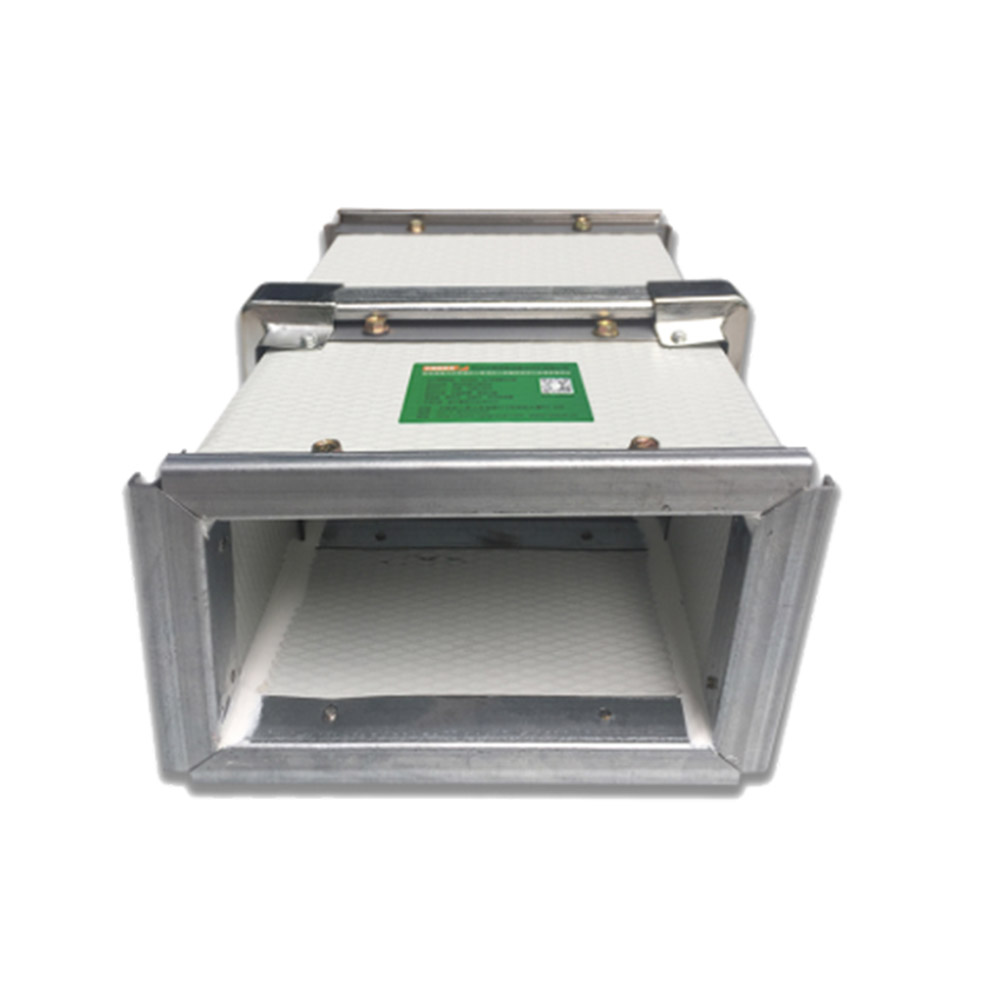 風管采用ZRCCII-PY10排煙風管, 風管板材由內外層涂層壓花彩鋼板,厚度大于0.2mm,芯材采用不燃微孔材料復合而成。采用冷彎鋼制法蘭,厚度不低1.5mm,C型鋼制插條連接。防火等級為不燃A級。工作溫度為1260-1680度,適用于耐火極限為1.5-3小時。